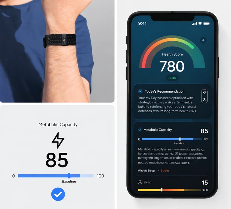 Track important body signals like heart rate, sleep patterns, and stress levels throughout the day.